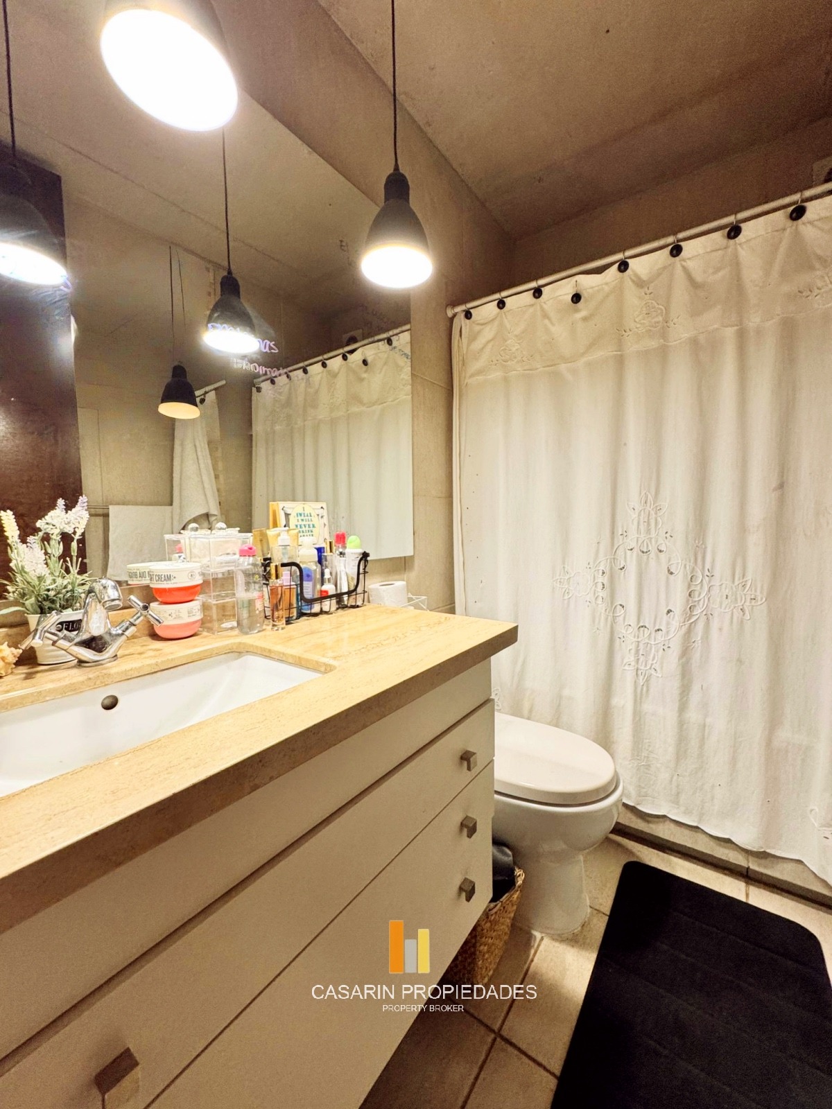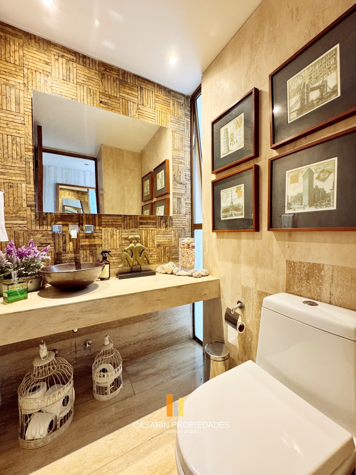 En el mismo nivel se encuentra el baño de visita con revestimiento de mármol y un amplio y cómodo escritorio.