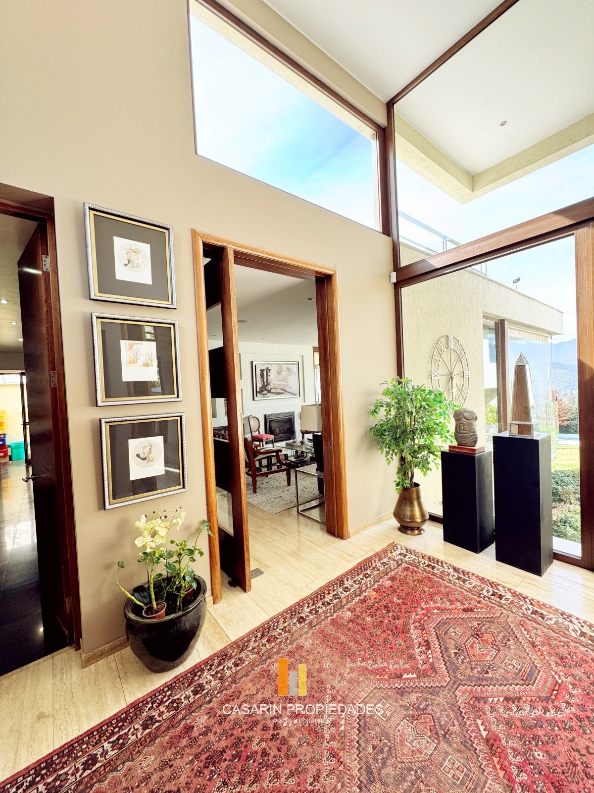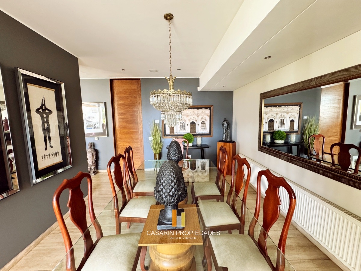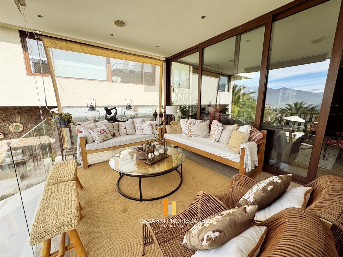 Nos recibe un imponente hall de acceso de doble altura con una gran vista despejada al oriente. Living muy amplio semi conectado al comedor, ambos con salida a un gran terraza techada con vista la oriente y cordillera.